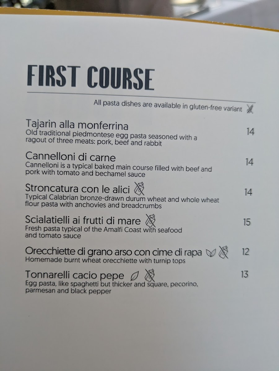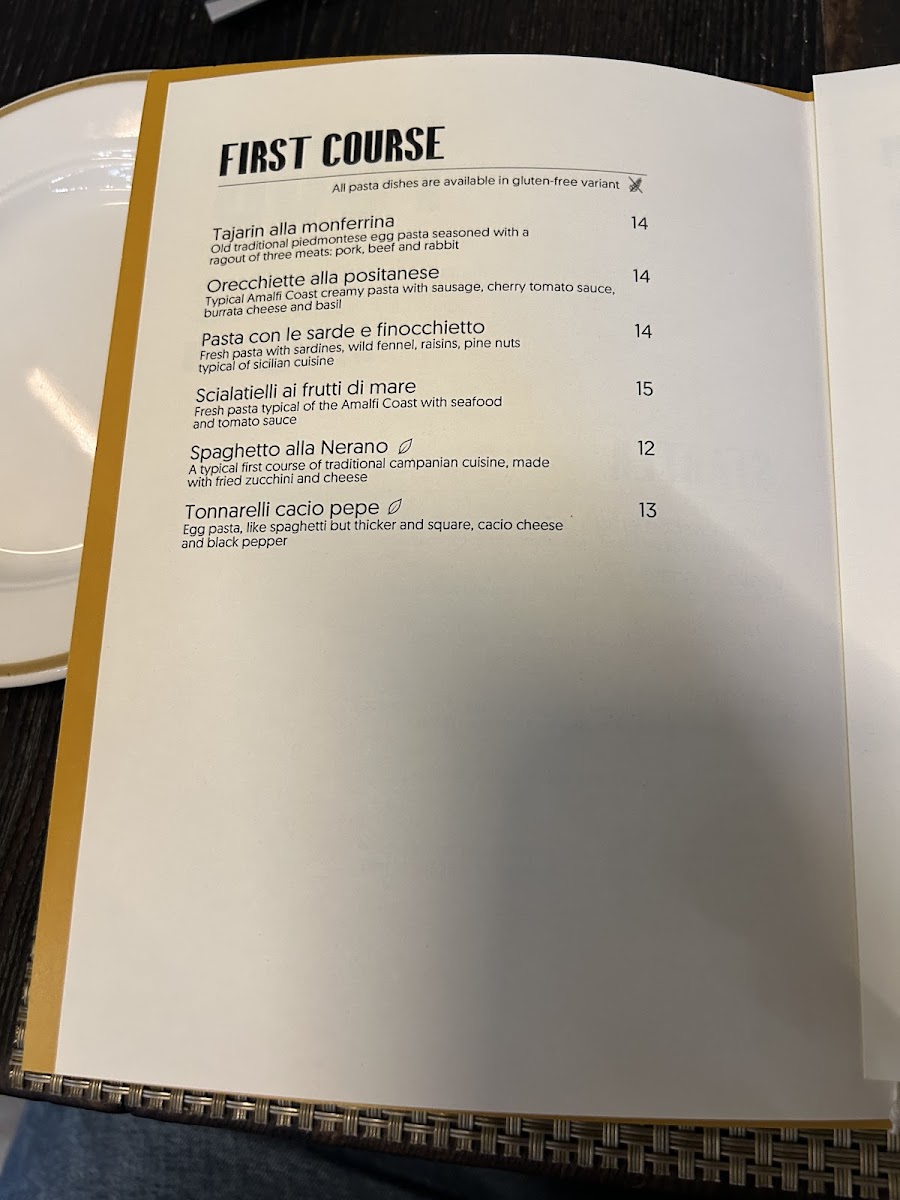 If you're in the mood for something unique, Tajarin Alla Monferrina is an exquisite pasta dish, featuring thin strands of pasta paired with a rich meat-based sauce. Another hearty option is the Guancia Brasata Con Purea Di Patate, a tender braised beef cheek served alongside creamy mashed potatoes. Cappon Magro, a seafood salad served with vegetables and herbs, reflects the coastal influences in the menu, while Brandacujun offers a satisfying mix of cod, potatoes, and olive oil.